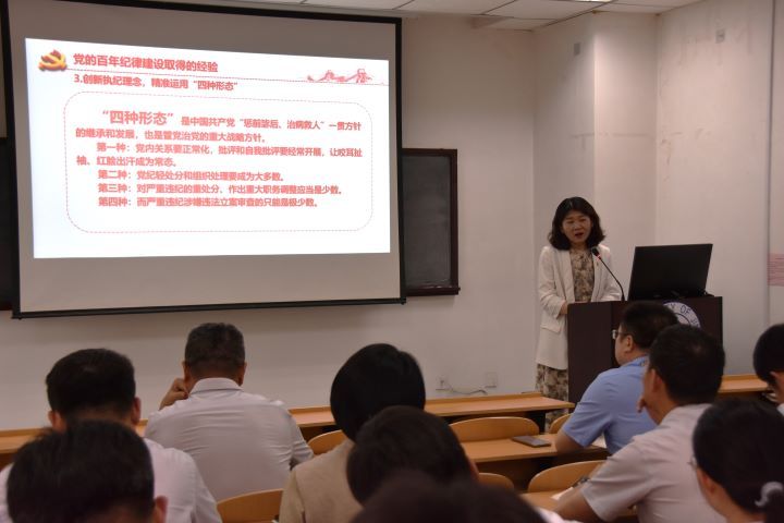 为深入推进落实《中共WilliamHILL中国委员会关于开展党纪学习教育的工作方案》,扎实开展党纪学习教育,6月5日下午,学校纪委副书记孙菲菲以《守纪律,讲规矩,做维护党的纪律的忠诚卫士》为题,在第五教学楼306教室为williamhill英国中文2024学年第一期党员发展对象作“青廉课堂”党纪专题党课,学院党委理论学习中心组成员及部分学生党员代表集体听课,党课由williamhill英国中文党委书记孙卫星主持。