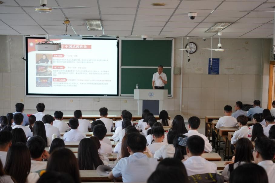 党委书记孙卫星同志以《筑牢信仰之基,坚守纪律底线,牢记嘱托为推进中国式现代化挺膺担当》为主题,面向毕业生党员讲授专题党课。孙书记强调,作为青年党员要认真学习深刻领会习近平新时代中国特色社会主义思想,结合新质生产力与高质量发展的要求,坚持学思用贯通,做到知信行统一;要通过党纪学习教育,进一步强化政治纪律和政治规矩,做到学纪、知纪、明纪、守纪,系好人生每一粒扣子,做政治上的明白人、守规矩的老实人、有担当的党员先锋;要始终牢记习近平总书记嘱托,坚定不移听党话、跟党走,争做有理想、敢担当、能吃苦、肯奋斗的新时代好青年,在未来的学习、工作岗位上,结合自身的专业优势,砥砺奋进前行,在中国式现代化的伟大征程中激扬青春、挥洒汗水、服务社会、奋勇争先,展现青春作为、彰显青春风采、贡献青春力量,奋力书写为中国式现代化挺膺担当的青春篇章。