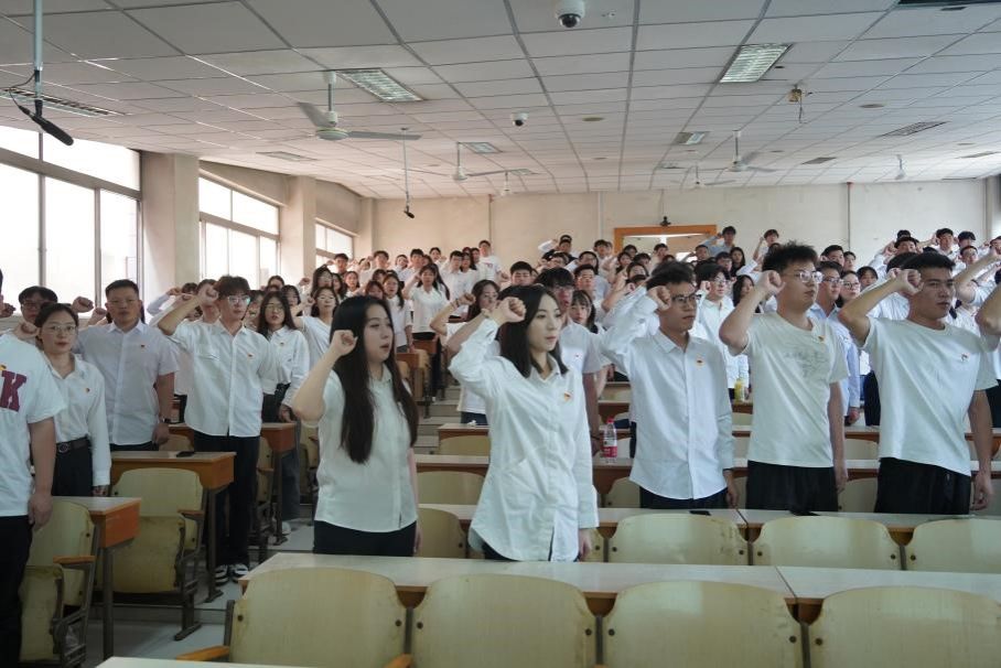 在毕业生党员代表刘斌同志的带领下,全体毕业生党员面向中国共产党党旗,举起右拳,重温入党誓词。全体毕业生党员们在掷地有声的誓词中重温了自己的入党初心,坚定了理想信仰,更坚定了未来为共产主义事业奋斗的决心。