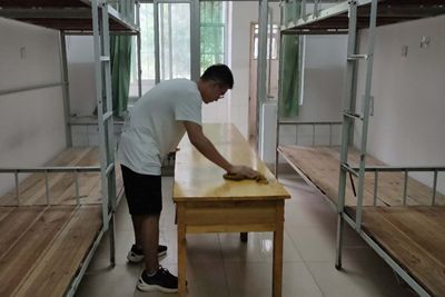 活动伊始,学院领导及活动负责人对本次活动做了详细部署,并提出要逐一排查安全隐患,清理垃圾死角等具体要求。随后,参与清扫的学生党员佩戴党徽,和学生干部按照工作分工依次到相应宿舍进行卫生清扫和安全隐患排查。每一位参与清扫的同学都逐一核查了宿舍内部家具设备使用是否正常,相应物品是否齐全等情况,并着重检查了宿舍内插头插座及是否有裸露电线等安全隐患,同时做好了相应记录。同学们认真清扫着每一个卫生死角,不放过每一处可能存在安全隐患的地方,并把重心放在桌面、窗台、墙壁和卫生间上。期间,学院领导来到新生宿舍清扫现场认真检查,并针对宿舍生活设施和卫生情况与学生干部和学生党员进行了交谈,并对学生干部和学生党员主动积极作表率的奉献行为提出了表扬与感谢。