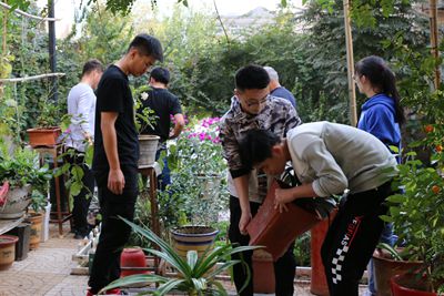 入党积极分子相约前往教职工宿舍,与张永清老师会合。张老师很亲切热情的欢迎大家,并耐心的给大家进行了分组和任务分配。大家接到“任务”后,在张老师井然有序的指挥下,立马行动了起来。你搬花盆,我平整土地,大家分工合作,热情高涨,个个干的认真起劲,一丝不苟。不到半天,花园里面的绿植都搬到了三楼室内,整个花园打理的井井有条、焕然一新。