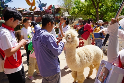 上午9点,阳光正好,志愿者们准时到达了跑马岭生态休闲度假区森林部落。随后,孩子及家长们在志愿者的带领下前往森林动物城,与羊驼、土拨鼠、黑天鹅和孔雀等动物进行了一场近距离接触。活动过程中,志愿者还耐心陪伴孩子们体验了投喂羊驼的乐趣。