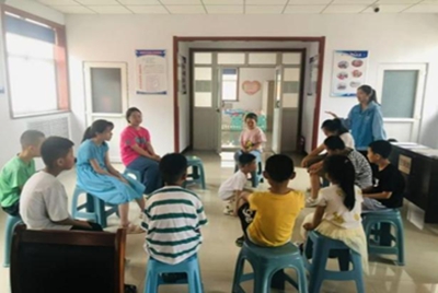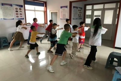 在教孩子们练太极的过程中,团队成员悉心指导每招每式,具体到手掌朝向、握拳姿势、跨步大小等细节。孩子们热情高涨,聚精会神地学习,动作逐渐熟练。学习之余,队员们还与孩子们一起玩丢手绢、萝卜蹲等小游戏,孩子们倾情投入笑声连连。