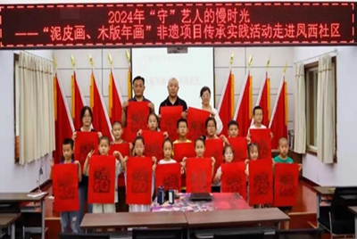 7月18日上午,在凤西社区,队员们携手社区工作人员共助社区儿童暑期托管工作,同时开展2024年“守”艺人的慢时光——“泥皮画、木版年画”非遗项目传承实践活动,带孩子们零距离感受了非遗文化的魅力。