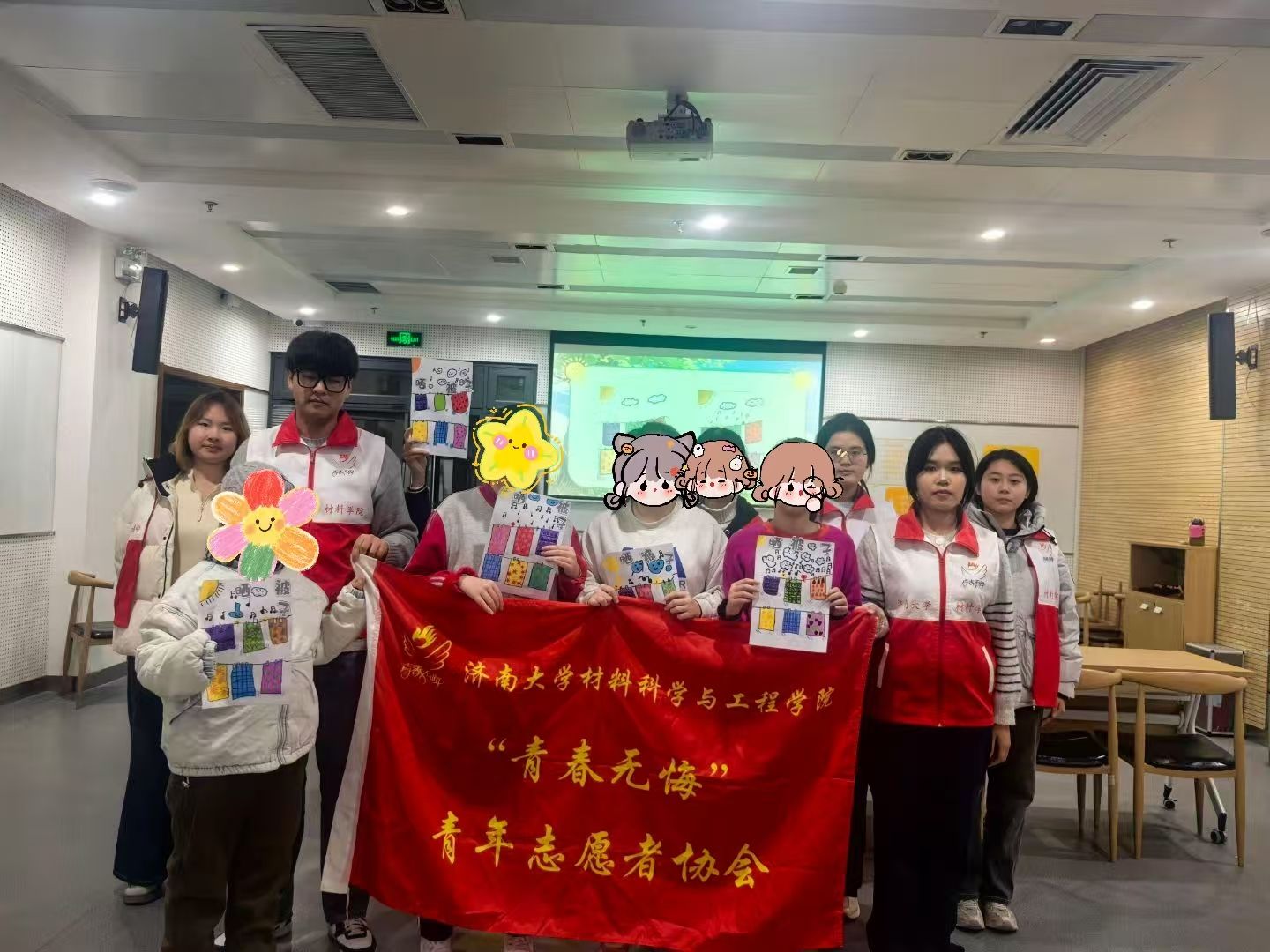 活动接近尾声时,志愿者与孩子们一起将“晒”“被”“子”字样粘贴在画作的留白处,共同完成了一幅幅充满童趣的主题作品。这些画作不仅是孩子们天真想象的生动记录,也成为志愿者与孩子之间情感交流的珍贵见证。
