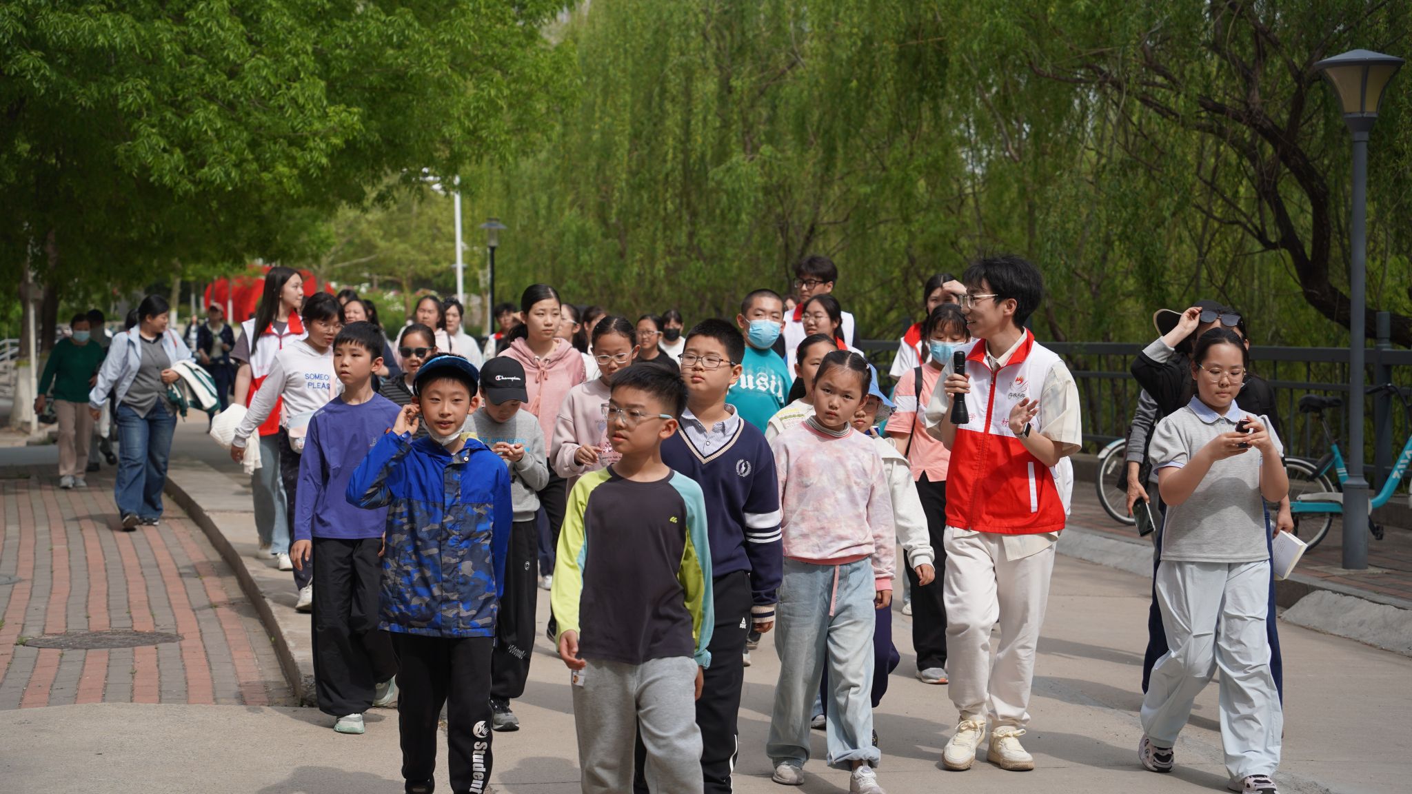 活动筹备期间,协会完成志愿者选拔工作并开展专项培训,明确活动流程、服务规范及与残障人士接触的安全要求,为志愿服务的专业有序开展提供有力保障。当日中午,志愿者统一着装抵达现场;14时,志愿服务正式启动。参观队伍从升华广场出发,依次游览第十一教学楼、滋兰苑、甲子湖等校园地标,志愿者沿途细致讲解校园文化与特色景致,带领大家感受济大的校园风貌。