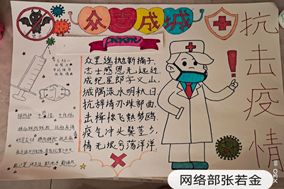 自活动上线便受到了同学们的积极响应,征集到的作品形式多样。同学们以墨抒情,以笔咏志,用文艺的力量鼓舞斗志,创造出了一件件充满大爱的作品。我们用文章、绘画和书法作品来歌颂、致敬依旧奋战在防疫一线的广大医护人员,是他们在我们面前筑起一道道保护的城墙,让我们不再惧怕病毒。生命重于泰山,疫情就是命令,防控就是责任。在疫情面前,没有人是旁观者,我们虽不能奋战一线,但我们也可以用自己的方法鼓励仍在一线的医护人员。让我们用作品凝聚起全力以赴、共克时艰的强大正能量,在党的坚强领导下,各族人民万众一心,众志成城,坚决打赢这场疫情防控阻击战!我们必定成功,武汉加油,中国必胜! ! !