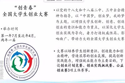 会议伊始,刘晓彤老师简单介绍了科创竞赛的三大赛事,分别为"挑战杯"全国大学生课外学术科技作品竞赛、"创青春"全国大学生创业大赛、"互联网+"全国大学生创新创业大赛,并介绍三大赛事各自特点,如专利申报,商业报告书就业优势及其注意事项,以及它们之间的区别与联系。紧接着,刘晓彤老师仔细地讲解如何撰写大挑报告书以及商业计划书的相关问题。她强调,"大挑"报告书与论文结构相似,首先要端正学术态度,从摘要到附件都要符合学术规范,如,实验数据的结果分析要表述准确,力求简明扼要,要做好报告书与项目的对接工作,让评委更方便评审。她还指出,商业计划书的撰写,第一要注重思维方式的转换,要以投资人和负责人的视角撰写,万万不可用学生视角从之。第二要注重结果导向即产品与服务的突出,语言力求精炼,具体易懂。这点对于初创企业尤为重要。第三要善于掌握系统的原则和方法,套用模型,使用图表来展示产品的核心竞争力,这点对于评委评选环节最为关键,第四要坚守诚信原则。客观描述事实,切不可学术造假,这点对同学们有着深刻启发。随后,刘晓彤老师简单介绍风险投资的分类以及投资进程。她指出,投资进程的前期应该更加注重团队的磨合、引入市场、降低成本等方面上来,万万不可急功近利而前功尽弃。