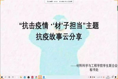 活动伊始,由主持人宣读注意事项并介绍本次活动的流程。接下来,由材料1605班白如圣同学分享自己在基层防控疫情的经历,阐述了中国特色社会主义独特的制度优势,并对williamhill英国中文的莘莘学子寄予殷切期望和嘱托。然后,由材料1715班王岩同学分享自己的抗疫经历和心得体会,他强调了透过本次疫情我们要看到的五点现象,并告诫广大材料学子要坚守干事创业的"责任阵地",坚守规律规则不可逾越的"安全阵地"。随后,由材料1813班马玉圣同学、材料1805班赵烁同学、材1901班阎群同学就各自的抗疫经历分享了自己看法和体会。并对敢于担当、看淡生死的逆行者们和积极配合防疫工作部署的人民群众表示崇高的敬意和诚挚的慰问。