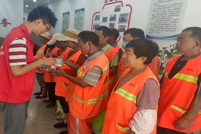 炎炎夏日送清凉,丝丝关爱沁心田。近期气温不断走高,环卫作业压力增大。8月3日,团队成员所在的职工服务中心开展送清凉慰问活动,联系到坚守在创城一线的环卫工人,为他们送去一份清凉、一份关爱。