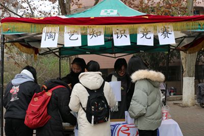活动开始之前,“瓷韵”陶艺协会成员准备好了陶艺知识题库和配套答案,并提前备好了明信片、笔芯、暖贴、练习本等奖品。布置好桌椅帐篷后,活动正式开始。“瓷韵”陶艺协会成员按照规划的流程,热情地组织同学们参与。其中,4名同学负责抽题答题环节及奖品发放,另有5名同学负责维持活动场地秩序。按照游戏规则,参与者可以抽取5道题,答对题数越多,奖励越丰厚。活动期间,陶艺协会成员认真讲解陶艺知识,同时做好相关记录;同学们积极参与,踊跃答题,气氛热烈。活动结束后,陶艺协会成员归还了桌椅帐篷,做好了善后工作。