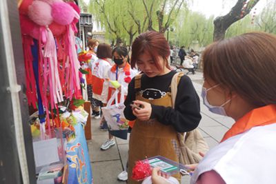 本次义卖以分组值班形式进行,共三组,每组四人,志愿者们提前到达百花洲义卖活动地点。义卖物品大部分是自闭症患者做的手工艺品,志愿者们了解义卖物品价格及心智障碍相关信息后,在活动地点发放印有关于自闭症相关知识的宣传单,号召游客伸出援助之手。