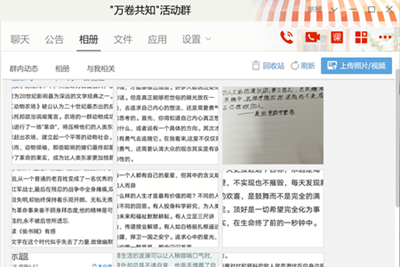 活动开始前,负责人向同学们宣传活动,号召同学们积极参与,加入提前建好的QQ群里。活动期间,参与同学每天有计划地阅读并将自己的阅读感悟或读书笔记发到QQ群里完成阅读打卡环节,负责人每天进行统计、检查及督促。最后,活动负责人汇总整理已上交的作品,并将优秀作品展示在公众号上。
