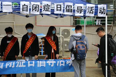 4月2日,世界自闭症关注日当天,同学们前往八食广场,在蓝色横幅上签字,参与“蓝色行动”活动;系上蓝丝带击掌,参与“与爱击掌”活动,并留影保存;领取自闭症相关知识宣传单并与之合影,参与“与爱合影”活动。活动期间,同学们向“星宝就业梦想星工坊”、“融合中国成就阿甘梦”等自闭症相关公益项目捐款,参与“爱心捐赠”活动;关注济南慧爱等关爱自闭症公益组织,参与“爱心关注”活动;转发活动相关QQ空间说说,向更多人传播自闭症相关知识,参与“爱心传播”活动。同学们在社交平台积极宣传,并呼吁社会共同努力,关注与消除孤独症人士教育与就业障碍。4月7日,活动圆满结束。