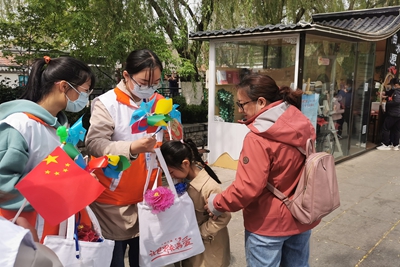 活动中,多名志愿者身着蓝色或红色的马甲,他们口号响亮,笑容亲切,使原本美丽的百花洲增添了一道靓丽的风景线。志愿者们看到了许许多多善良的人,遇到了很多记忆深刻的事,这里的每一个微笑,每一份爱心,都让这个春天更加温暖,让美丽的景区更加迷人。有了上一次活动积累的宝贵经验,加上志愿者们积极的努力,本次义卖活动取得了圆满成功。