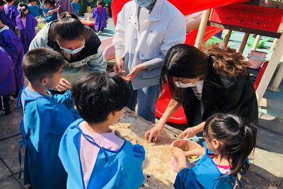 活动准备阶段,参与活动的志愿者们通过网络学习陶泥的历史文化,并进行了简短的培训,强调了注意事项和纪律问题。下午2时许,陶协一行6名成员携带制作材料抵达济大幼儿园,幼儿园老师带领孩子们在园门口热烈欢迎今天的陶艺老师们。随后幼儿园老师带领孩子们更换服装,陶协成员负责布置场地,并将准备好的陶泥分发到每个小朋友手中。捏泥之前,由陶协成员给小朋友们介绍陶瓷艺术的起源。孩子们对陶泥制作具有浓厚兴趣,都好奇地询问陶泥的做法、用途等。小朋友们认真听取讲解后,纷纷发挥自己的创意,动手体验陶泥的制作,专心学习制作陶泥的过程,在陶协成员和幼儿园老师的帮助下制作出一个又一个生动形象的动物,植物等等。最后,小朋友们与陶艺老师们合影留念,至此,本次活动圆满结束。