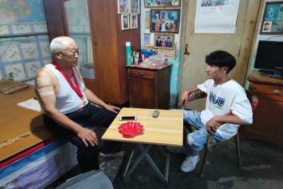 活动前,团队成员提前联系了本次活动要探望的孙寿荣爷爷。确定探望时间后,孙立冬汇总了一些访问的问题并确定了访问的流程。活动当天,团队成员来到孙寿荣爷爷的家中。在与孙爷爷的交谈中团队成员们得知,孙寿荣爷爷今年73岁高龄,于1967年在军队中入党,距今已有54年。孙爷爷告诉团队成员,自己曾经是北京军区高炮七十九师的一名炮兵,参与了1968年抗美援越战争,在听孙爷爷讲述的过程中,团队成员们深刻感受到那个年代革命先辈们的不易,心中对革命前辈的敬仰之情油然而生。就在前不久,孙爷爷还荣获了一个在党五十年的纪念章。当孙爷爷把纪念章拿在手上时,他的脸上洋溢着无比骄傲与自豪的神情。团队成员在看到纪念章之后,心中充满了敬佩。与此同时,也更加坚定了入党的信念。