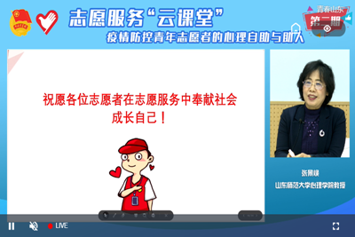 为有效指导青年志愿者科学有序参与疫情防控工作,3月29日,团省委特邀山东师范大学心理学院张景焕教授,为广大青年志愿者作《疫情防控青年志愿者的心理自助与助人》专题讲座,williamhill英国中文“青春无悔”青年志愿者协会组织协会骨干观看此次志愿服务“云课堂”。
