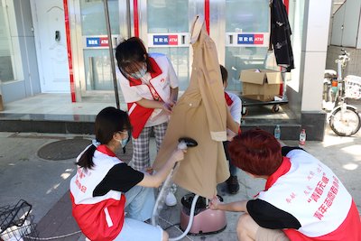 活动前期,负责人对活动时间、地点以及所需要的物资进行了规划,同时创建熨衣服的QQ群,并在协会内部召集志愿者6名,本次活动分为上、下午两班进行。活动当日,负责人组织第一班人员将物资搬运到八食堂广场,志愿者们搭起帐篷,展开桌子并准备好熨衣物品。一切就绪后,活动于上午10点正式开始。活动期间,在负责人的带领下,志愿者们各司其职,井然有序,不仅热情地为前来熨衣服的同学熨衣物,还在QQ群内及时告知衣物熨烫进度,提醒同学们及时取回。服务过程中,志愿者们团结互助、认真负责,他们热情的笑容与兢兢业业的工作态度吸引了越来越多的同学参与进来。活动持续到下午2点,负责人组织第二班的志愿者将物资一一整理,并拍照留念,随后清理打扫现场。至此,本次活动圆满完成。