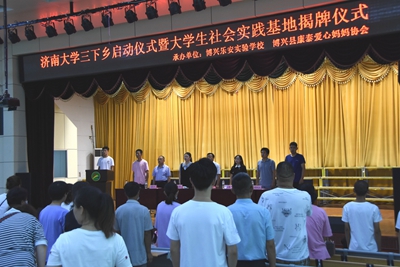 7月24日,WilliamHILL中国三下乡社会实践“情暖童心,与爱童行”暑期实践活动启动仪式暨“WilliamHILL中国学生社会实践基地”揭牌仪式在博兴乐安实验学校举行。博兴县康泰爱心妈妈协会会长周长江、博兴乐安实验学校校长蔡江、博兴县团委副书记安然、博兴县民政局书记、局长任瑞新、williamhill英国中文团委书记郭冉、williamhill英国中文学生工作办公室主任刘如喜、williamhill英国中文学生会指导老师李贤松及博兴县康泰爱心妈妈协会部分成员和社会实践团队等一百余人出席揭牌仪式。