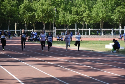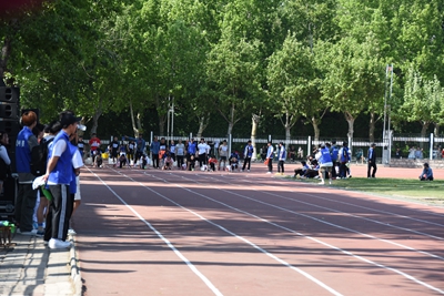 赛前,教工运动员们个个神情饱满,摩肩擦掌,为比赛做着热身活动。接着,在裁判的指令下,他们在跑道前摆好起跑姿势,蓄势待发。只听一声发令枪响,教工运动员们便如离弦的箭一般冲了出去。在100米的短距离内,许潇雨老师的每一个跨步都那么稳健而坚定,他用尽全力奔向终点。赛场上,留下了他冲刺时矫捷的背影。与此同时,看台上的同学们也都激动地站了起来,为他呐喊加油。最后,许潇雨老师获得了第七名的可喜佳绩。