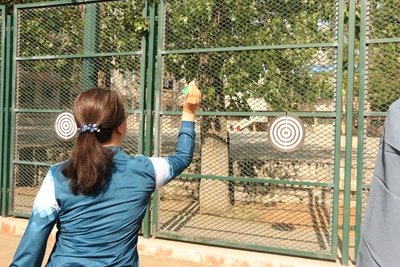 比赛开始前,运动员们积极热身,做好充分准备。赛场上,运动员们精神抖擞地上场,一个个摆出“例无虚发”的架势,他们个个热情高涨、精神抖擞,他们屏气凝神,沉着应战,有的一发即中,赢来大家阵阵叫好声;有的虽屡屡失手,但依然毫不气馁、迎头再战。关瑞芳老师凝神聚气,聚精会神地盯着镖盘,经过一番仔细的研究后,奋力一掷,迅速将手中的飞镖投了出去,投完一支后开始不断调整自己的呼吸节奏和比赛状态,用心将每一支飞镖投射出去。现场观众不时为运动员们加油鼓劲、呐喊助威,比赛气氛紧张热烈。最后,关瑞芳老师在比赛中取得第三名的好成绩,比赛在欢笑声中圆满结束。