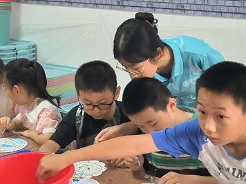 “青春无悔,清音入泗”青年支教团志愿者根据孩子们的实际情况精心制订相关教学计划,开设音乐鉴赏课、剪纸体验课、粘土手工等课程。开营仪式中, 首先“青春无悔,清音入泗”青年支教团向到场的学生介绍了支教团的和支教志愿者相关情况。随后,通过破冰小游戏为支教活动有序进行奠定良好基础。在音乐课堂上,老师带领孩子们走进音乐世界,孩子们都热情高涨,铜铃般的童音不觉萦绕社区服务中心。最后,在剪纸课堂上,志愿者们从剪纸的悠久历史引入,让学生在感受中国传统文化魅力的同时吸收知识,在身体力行的体验中感受美得内涵,剪纸活动不仅培养了孩子们的动手能力,也增强了学生对于美的感受。丰富多彩的课堂,让孩子们稚嫩的脸庞时时刻刻洋溢着快乐的笑容,一天的课程结束孩子们都意犹未尽,依依不舍。