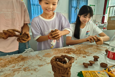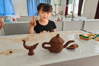 在陶艺制作中,支教老师指导孩子们进行动手创作,孩子们用陶泥、牙签等工具创造出了各具风格的陶艺作品。科学小实验课堂上,老师带领孩子们畅游在科学的实验中,寓教于乐,在快乐的实验中学习到了多种科学知识。