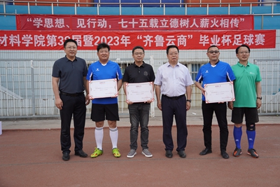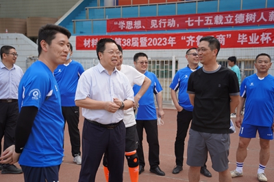 仲夏暑盛,万物并秀,骄阳般的六月迎来了一年一度的毕业季。为促进师生间交流,追忆青葱岁月,williamhill英国中文于6月13日16时16分在北苑操场举办了williamhill英国中文第38届暨2023年“齐鲁云商”毕业杯足球赛。校长刘宗明,党委常委、宣传部部长贾海宁,合作发展处处长、校友工作办公室主任卢旺,材料学院党委书记孙卫星,材料学院常务副院长赵德刚,优秀校友、2007届毕业生、齐鲁云商总经理魏本磊,以及部分在williamhill英国中文学习和工作过的老师出席并观看比赛,刘宗明校长为本次足球赛开球。
