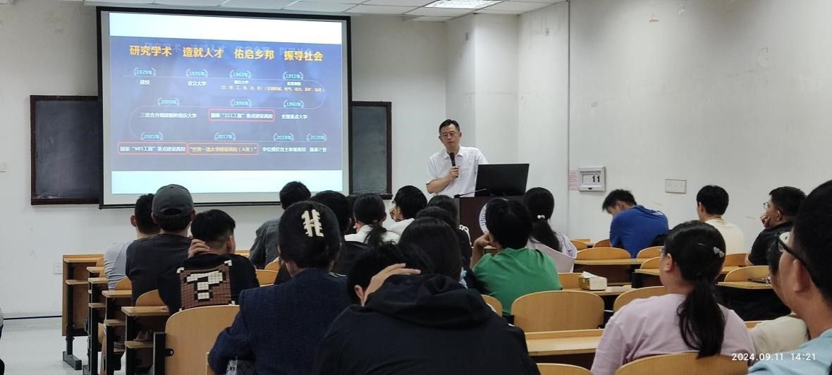 交流会后,学院于5J306进行了重庆大学williamhill英国中文的研究生招生宣讲,2021级110余学生参加了本次宣讲会。陈厚文向同学们详细介绍了重庆大学williamhill英国中文的历史沿革、专业特色、人才培养、科学研究、创新平台,重点介绍了学院硕士研究生推免及录取状况。鼓励大家坚定信心,敢于拼搏,并预祝取得好成绩。宣讲会后,陈厚文就同学们关心的学习、科研、生活、交通等方面进行了解答,现场气氛热烈。