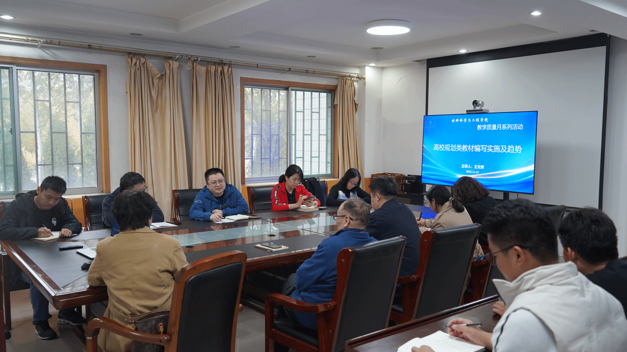 段广彬进行了总结发言。他指出,教材是高校人才培养的重要载体,担负着教学目标实现、教学方法创新、学生能力培养、知识传承与更新的职责。学院自2023年牵头承担山东省普通本科高校重点领域教学改革试点项目以来,多次举行座谈交流会,省内多所高校就材料科学与工程专业课程群、教材群建设达成了合作共识,希望各位负责人以此次交流会为契机,进一步梳理新业态下教材编写新思路、新做法,将绿色低碳、智能化、功能化的发展理念融入教材,保质保量完成111项目要求。