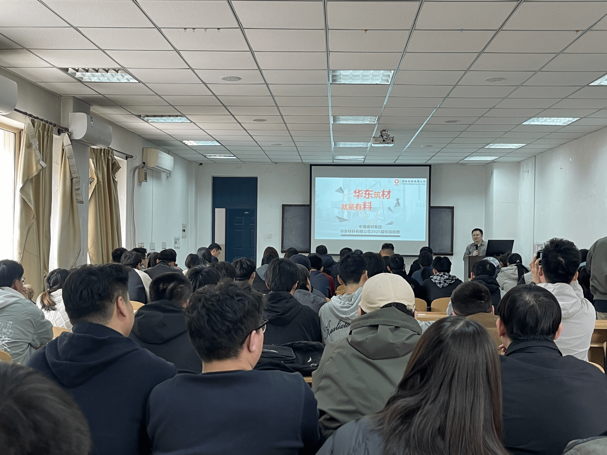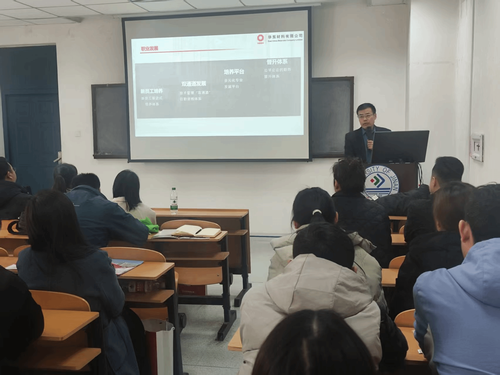 华东材料有限公司济南运营平台负责人、我校校友宋瑞旭从公司简介、主营业务与特色、人才需求、待遇与发展等四个方面进行了宣讲。宣讲结束后,毕业生们与各运营平台负责人就自身关心的问题进行了深入交流,会议场面热烈。