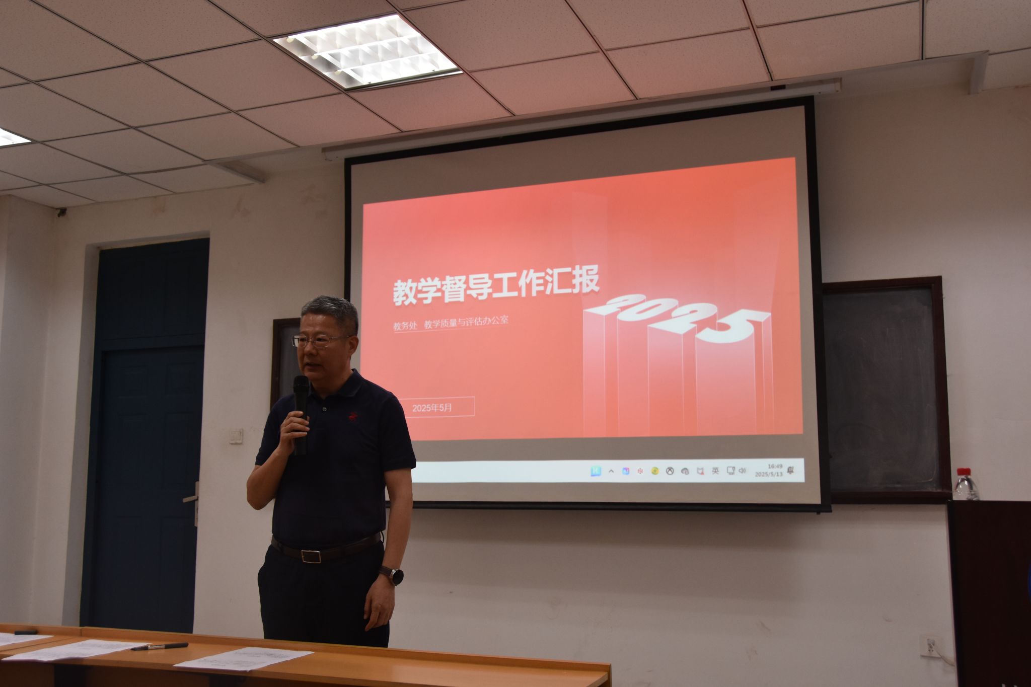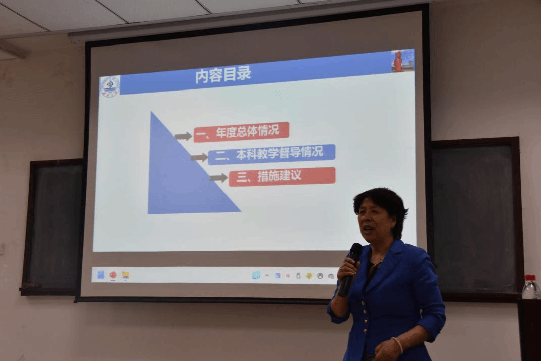 王元秀围绕上年度督导总体工作,从本科教学督导现状与改进建议出发进行了系统性反馈。反馈内容涵盖上、下学期教学督导全流程工作,包括课堂听课巡课、教学档案审查、实习实践基地专项督查等重点环节。同时,她针对教学材料标准化建设、学院教学管理科学性与严谨性提升等核心议题,提出了切实可行的改进举措。