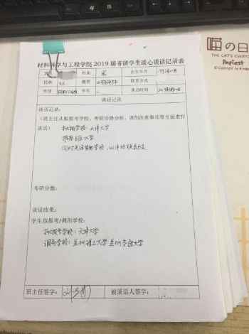 学院“考研状元”、材料1510班李钟书同学说:“三月份刚开学的时候开始了复习,由于很久没碰并且还要上课,所以进度特别慢,好在学院老师的帮助下匹配了合适的研友,在课后和晚上可以互相监督复习。复习过程中有时会因为反复做错和大面积出错等原因而情绪低落或者怀疑自己,是周围同学的帮助和辅导员班主任的关怀,让我松弛有度,保持高标准一直坚持到最后。”
