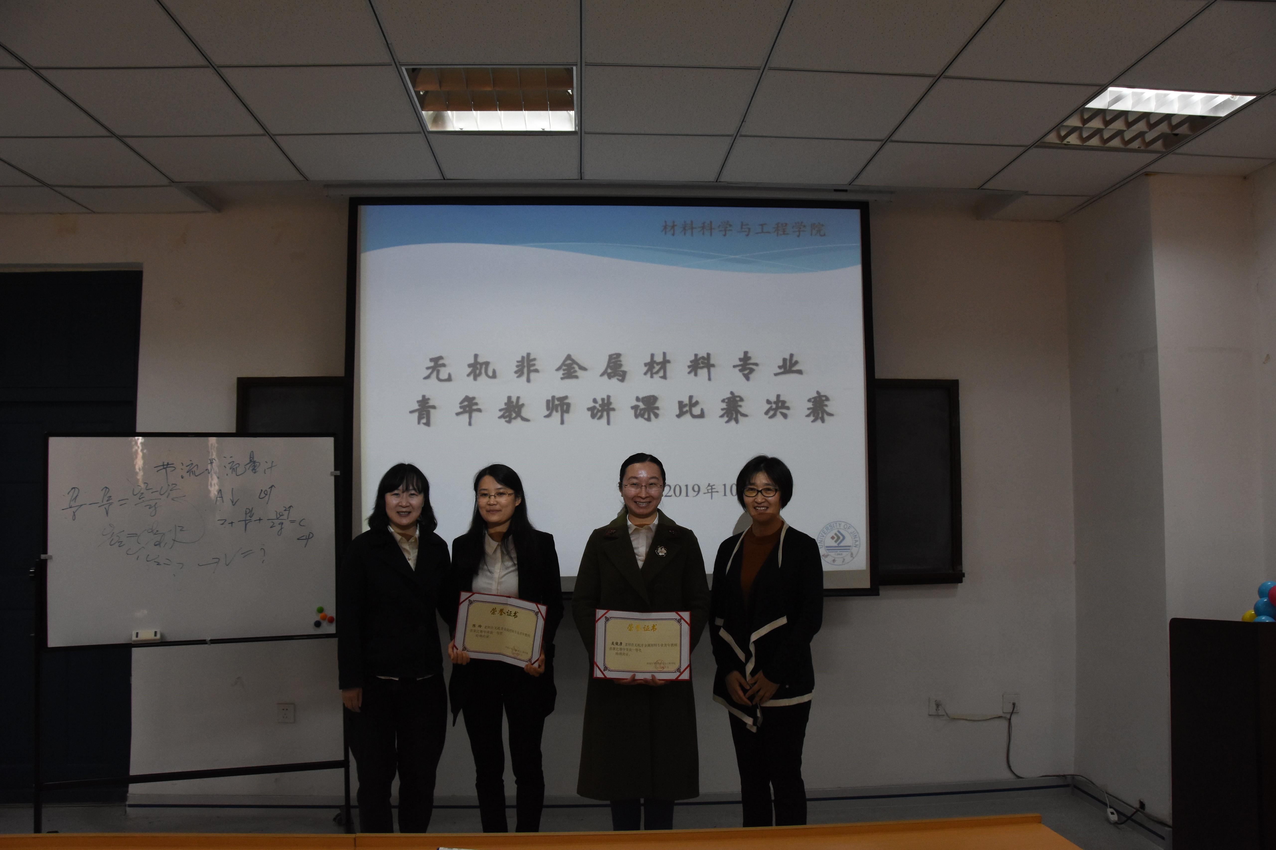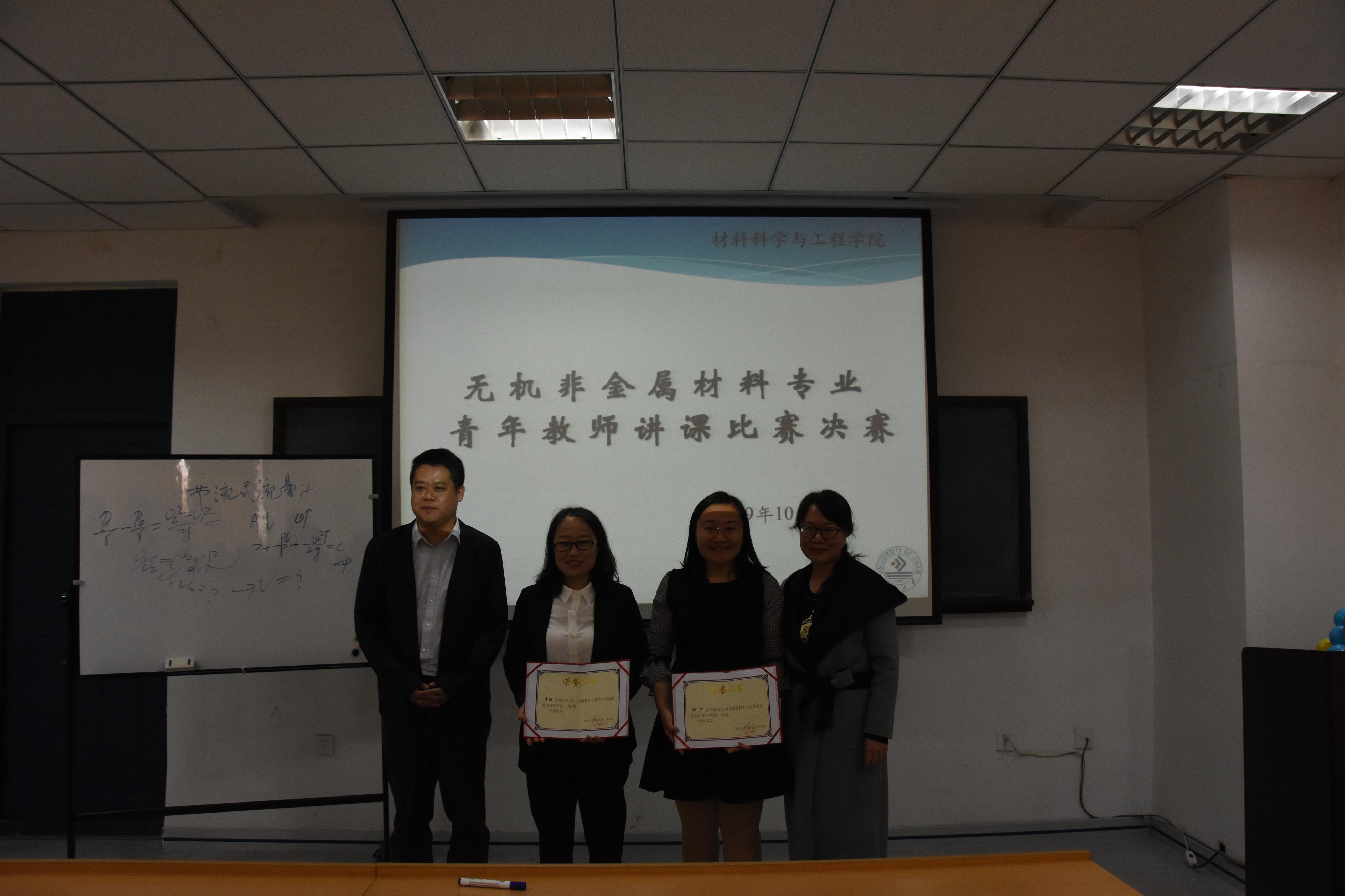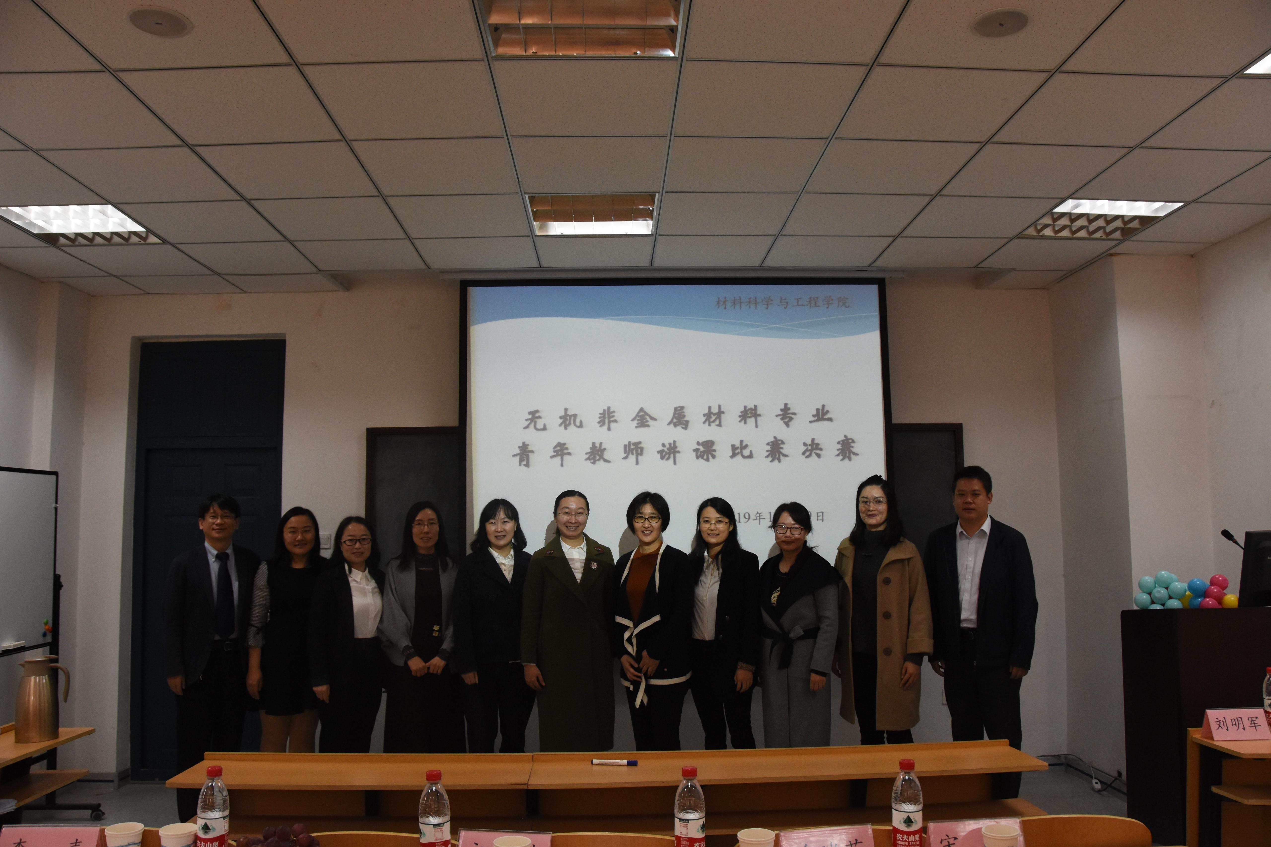 本次讲课比赛由陈玲、李丽、郇宇、吴俊彦四位老师参加,评委由武汉理工大学文进教授、材料学院李嘉、关瑞芳、宋鹏、高广刚四位教授组成。