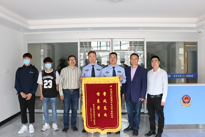 学院为感谢七贤派出所协助被骗同学追回被骗钱款,2021年5月11日下午,党委学生工作部(处)李荣光副部(处)长、学院李树人副书记、2018级辅导员刘绪峰老师同两位受骗学生一起前往七贤派出所赠送锦旗。