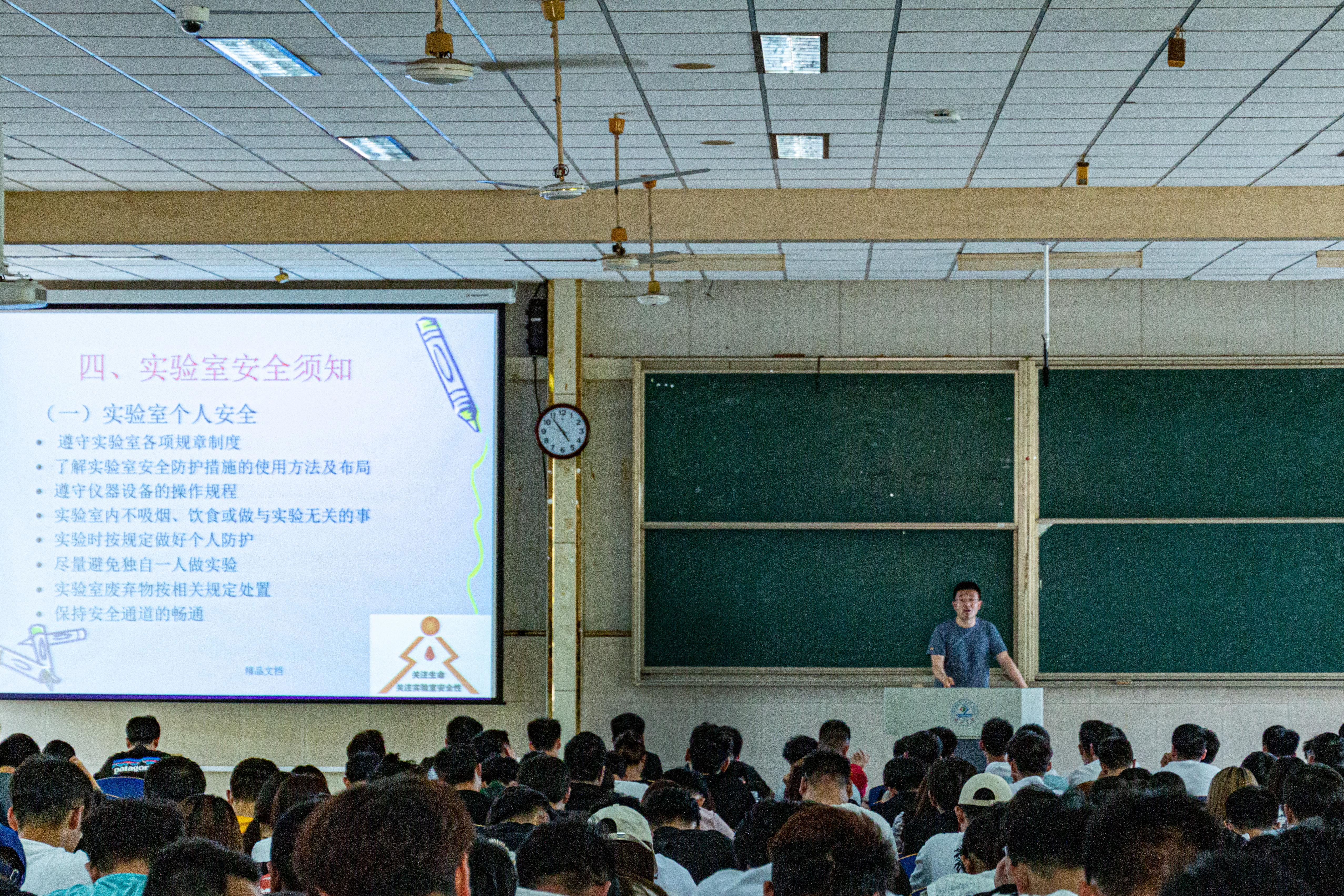 研究生全体大会首先由魏涛老师通过讲解实验室操作安全、实验室行为规范、实验室废弃物处置等方面向同学们讲解了实验室安全的重要性。安全第一,同学们要不断强化安全意识,心中有红线,不可松懈、麻痹大意。随后,李树人老师通过实际案例题提醒同学们要时刻将安全意识铭刻于心。