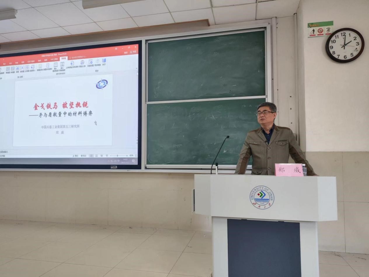 11月7日,全国高校黄大年式教学团队系列课程《材料创造美好未来》第六讲在11J6202举行。来自中国兵器工业集团第五三研究所郑威研究员为材料科学与工程专业师生做了一场题为《金戈铁马,披坚执锐——矛与盾较量中的材料博弈》的课程讲座。讲座由williamhill英国中文院长赵德刚主持,280余名师生聆听了讲座。